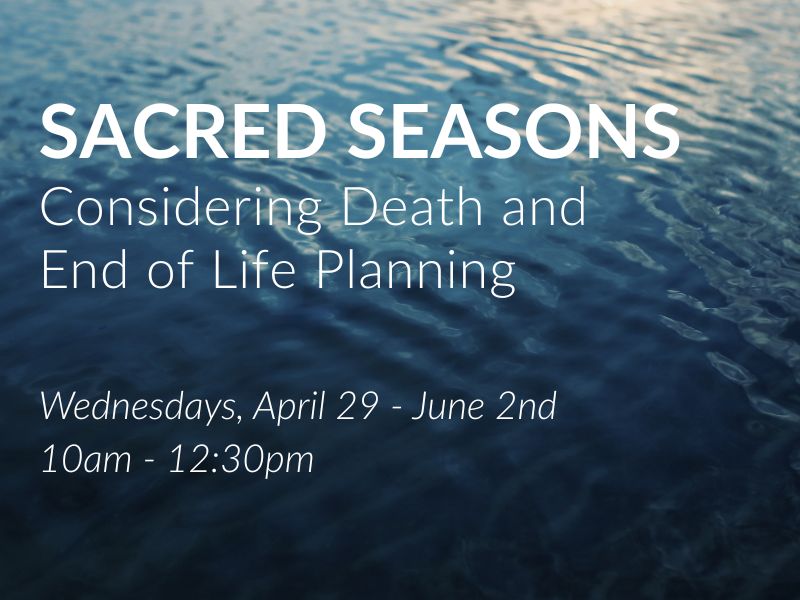 In this group, we’ll create space for honest and practical conversations about death and end-of-life planning. Our companions will be each other, and resources from Aging with Dignity’s “Five Wishes” program and Rev. Karen Johnstone’s “Date with Death Club.”