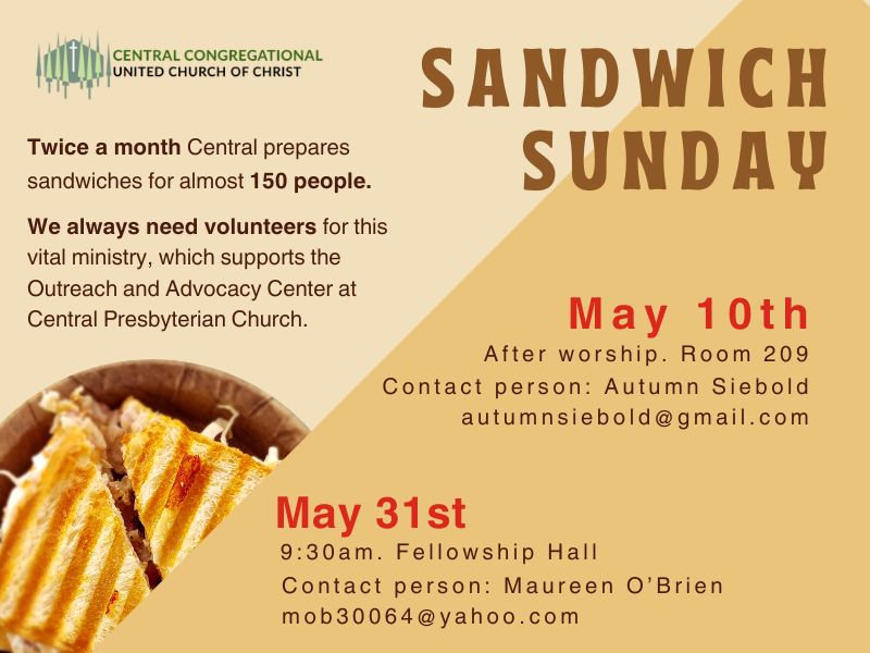 If unable to help with lunch packing, consider bringing a dozen sandwiches (meat, egg salad, peanut butter), bags of chips, crackers, or canned drinks to church on this Sunday.