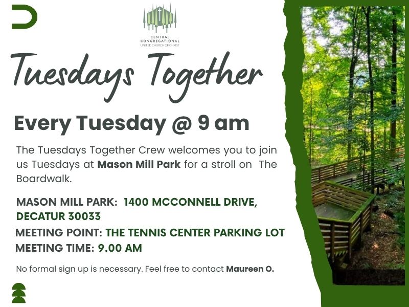 The Tuesdays Together Crew welcomes you to join us Tuesdays at Mason Mill Park for a stroll on The Boardwalk.