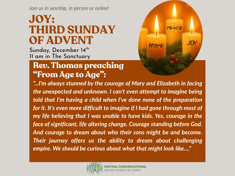 This weekend, we’ll also be hosting a holiday celebration for the Georgia Mushroom Club, and a funeral for a member of Kirkwood UCC. I hope each of you will take a moment to offer gratitude for those who came before us, armed with wisdom & confidence that a place like Central could be a ministry for our whole community too.